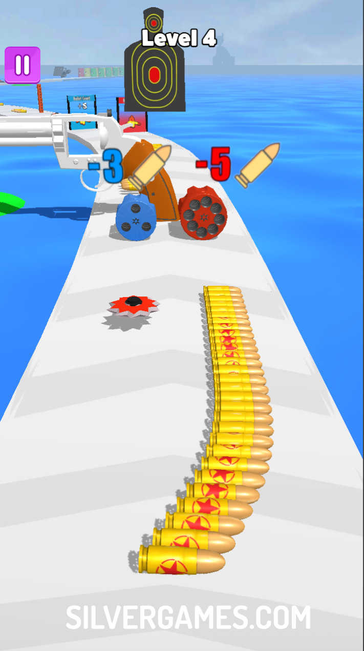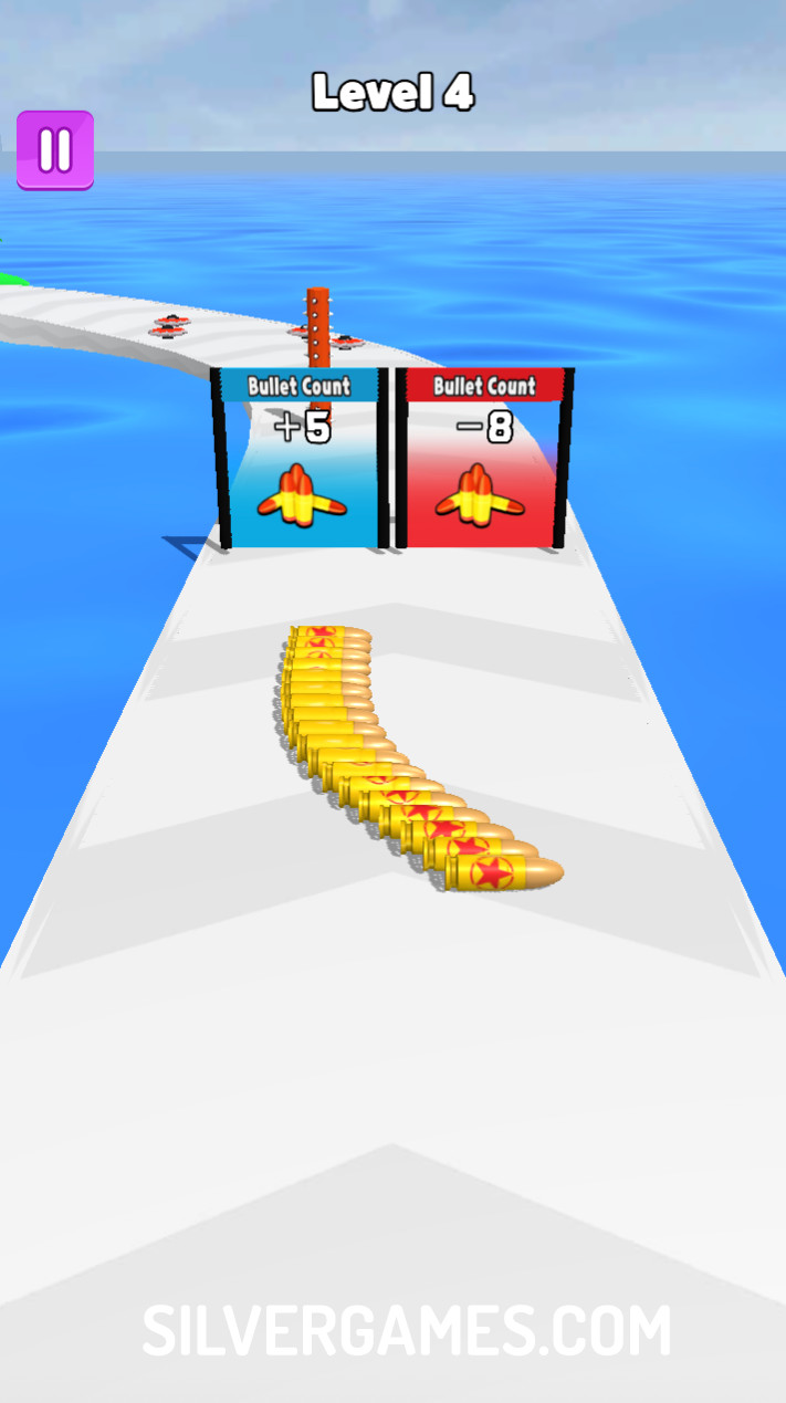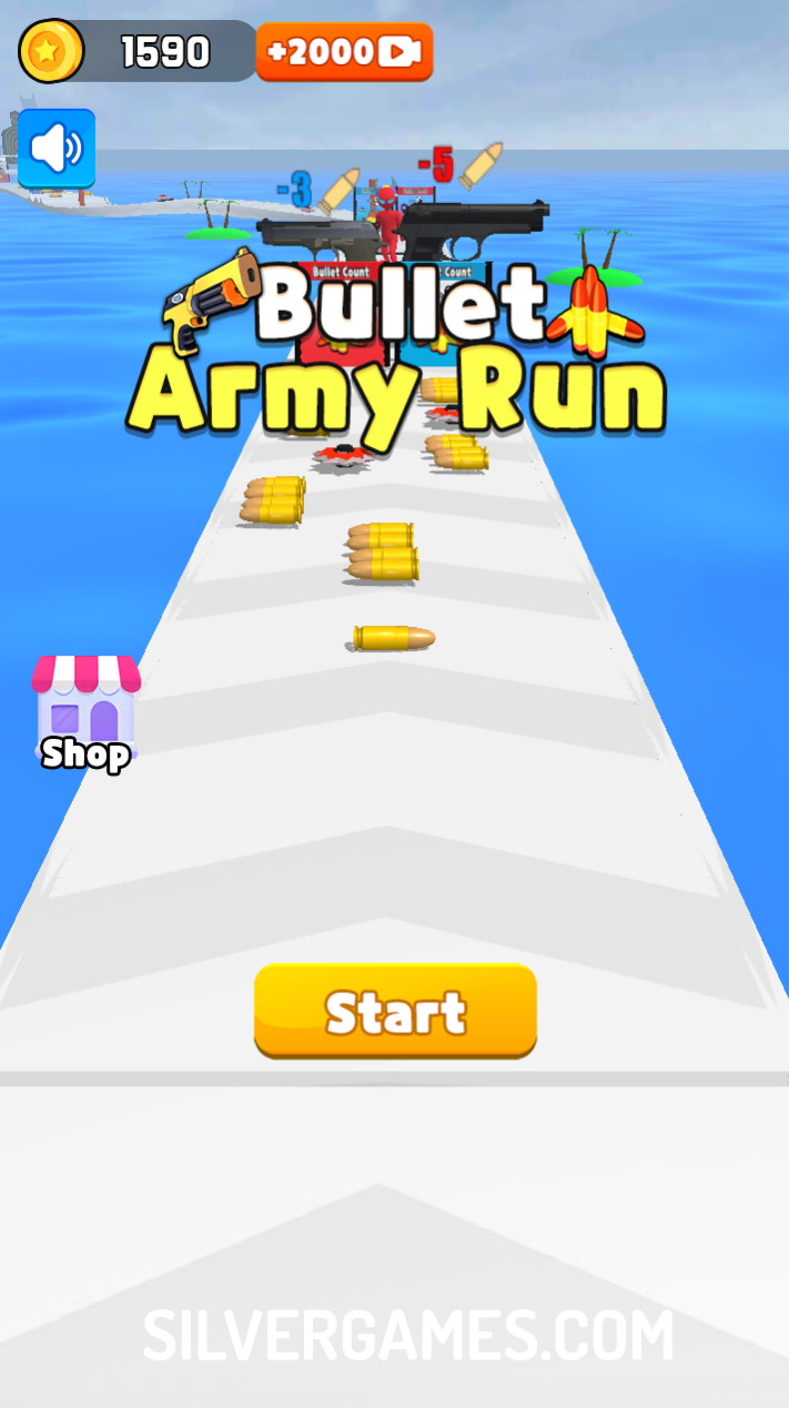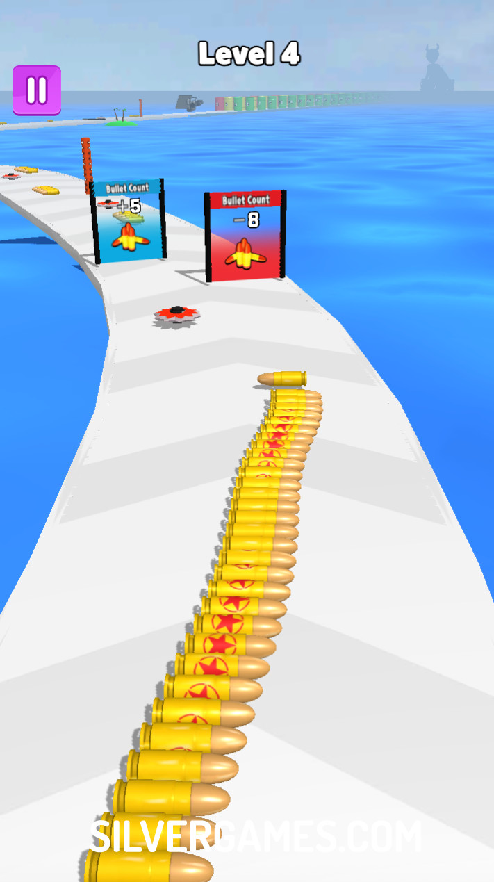 As you progress, you’ll encounter gates that increase or decrease your numbers, moving barriers, explosive traps, and waves of opposing units. Successfully managing your army’s size while navigating hazards is essential for overcoming end-of-level confrontations and unlocking new stages. Bullet Army Run combines light strategy with arcade action in a streamlined, accessible format. Whether you're building a massive army or just trying to survive the next trap, the game keeps the tension high and the pace fast. Have fun playing Bullet Army Run online and for free on Silvergames.com!