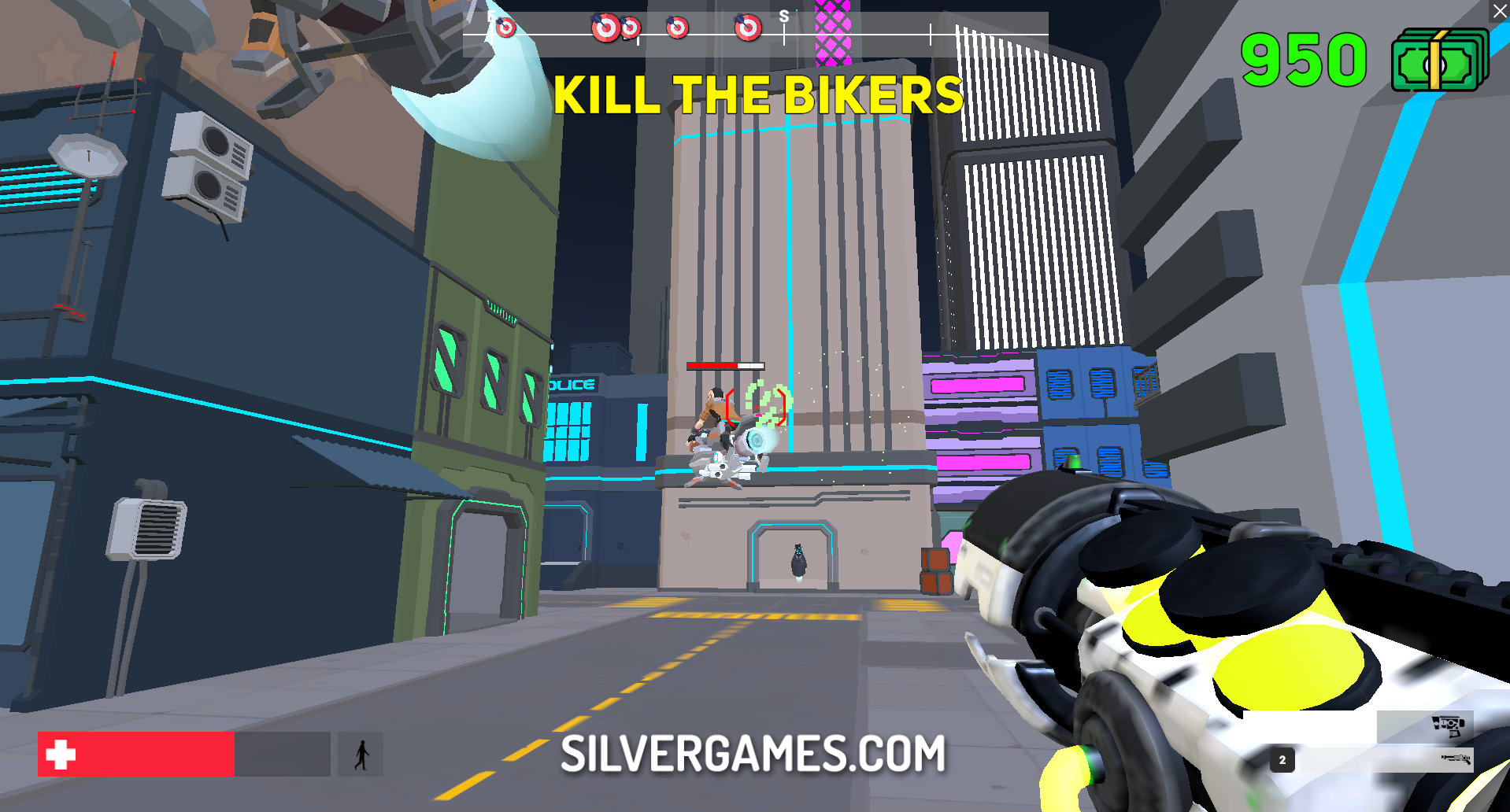 Cyberpunk Corporation is an exciting open world game with a futuristic theme where you have to earn your living by completing missions. As always, you can play this game online and for free at Silvergames.com. Life in the future is not as easy as one would think. Same problems and same worries. But for all that there is a solution that can be bought in a weapons store.