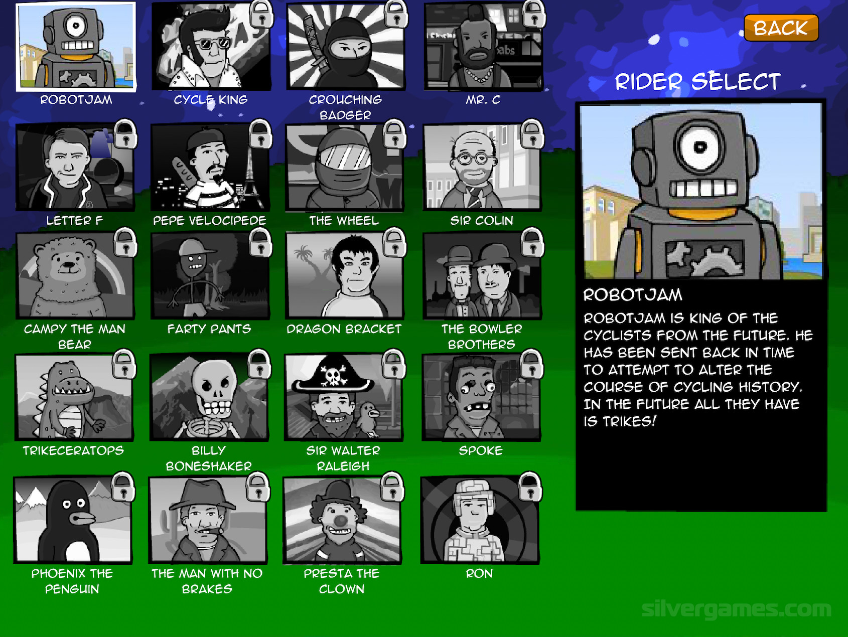 Cyclomaniacs is a great vertical bike racing and stunt game in which you have to compete in lots of locations to become the ultimate champion. You can play this game online and for free on Silvergames.com. Start playing as a skillful robot and try to win races to unlock cool features and characters. Try to balance your bicycle to perform air flips and, of course, avoid falling down.