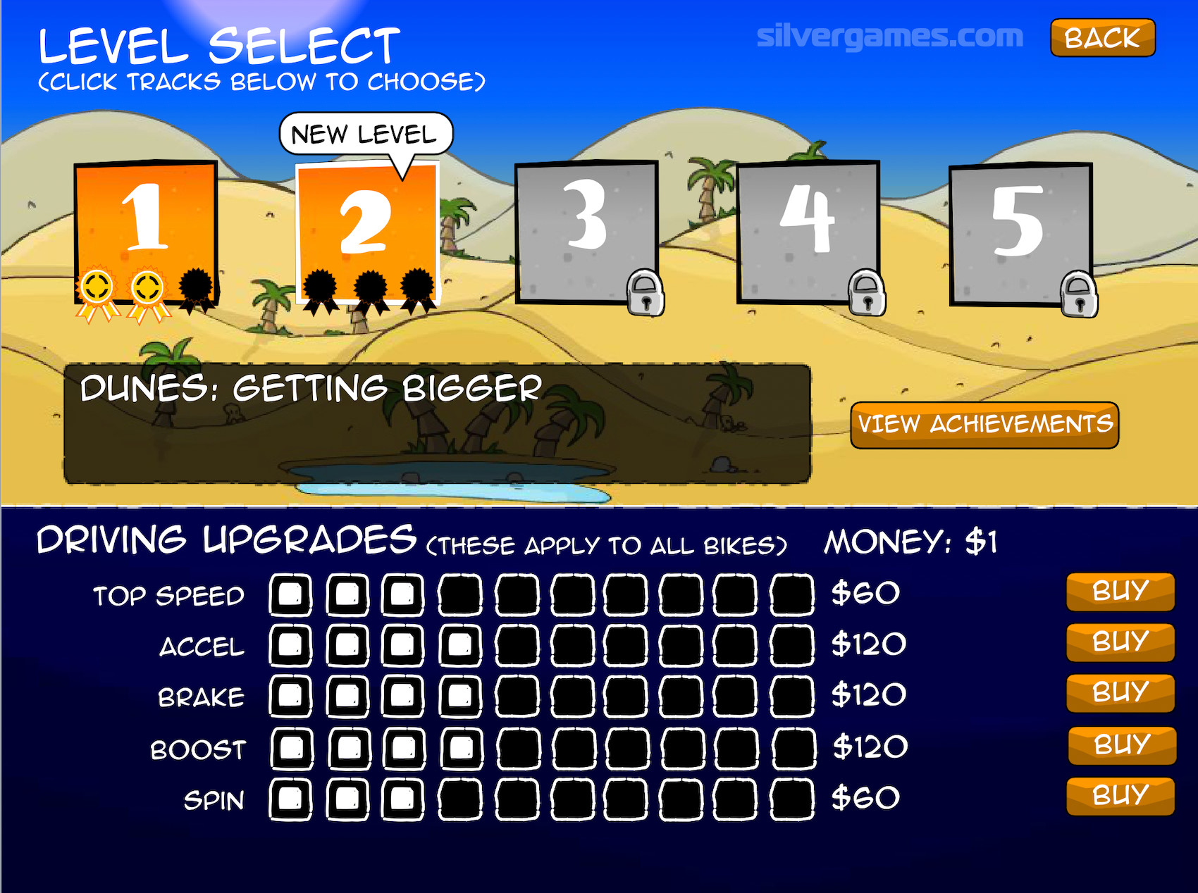 Try to complete achievements on your way to the finish line, like finishing races within 60 seconds or in a top 5 position. Perform stunts to increase your boost meter and leave your opponents behind. Enjoy playing Cyclomaniacs!