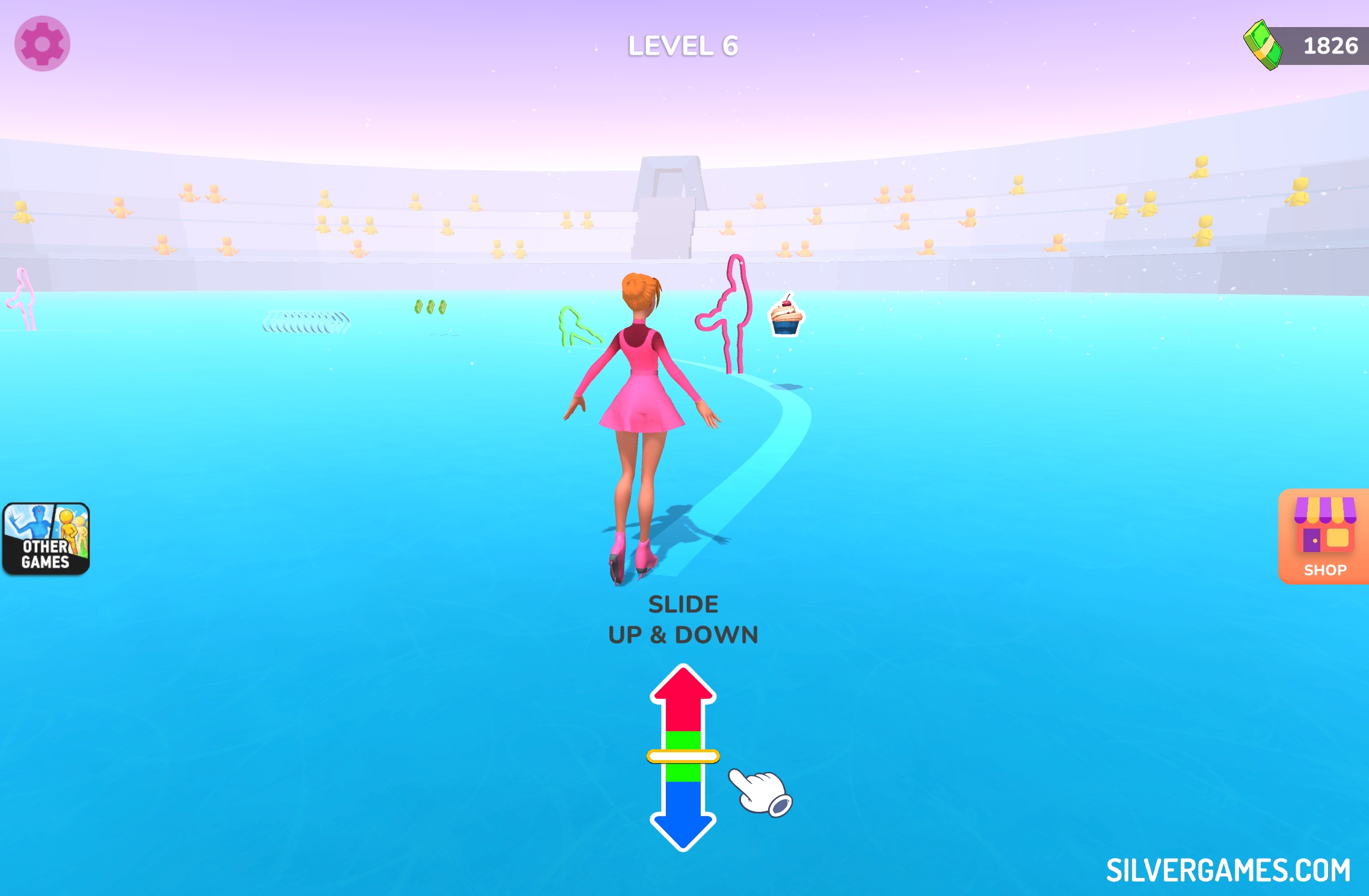 Reach the finish line with the maximum amount of points. Activate the screen by tapping it or clicking the mouse. Move the indicator along the scale until it reaches the desired colour. The figure skater will strike a pose depending on the position of the indicator. Perform graceful spins, jumps, and routines. Upgrade your athlete with earned points. Buy new outfits and unlock new stunts. Have fun!