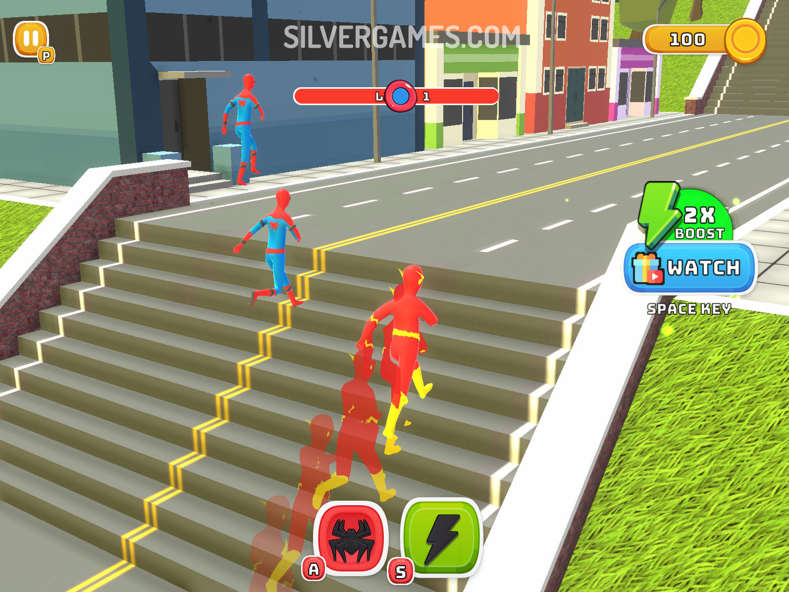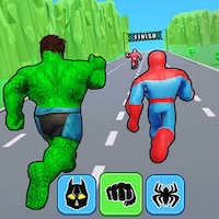 Hero Transform Race is a fun 3D parkour-style racing game where you sprint through obstacle courses and switch between superhero forms—like Hulk, Spider‑Man, Flash, Iron Man, and more—to tackle each challenge efficiently. Pick the right hero at the right moment: fly over gaps, smash through barriers, climb walls, or dash at super speed. With up to 14 different heroes unlocked by winning races, your success depends on quick reflexes and smart transformations. The game offers solo mode and local two-player, letting you compete alone or share the action with a friend.