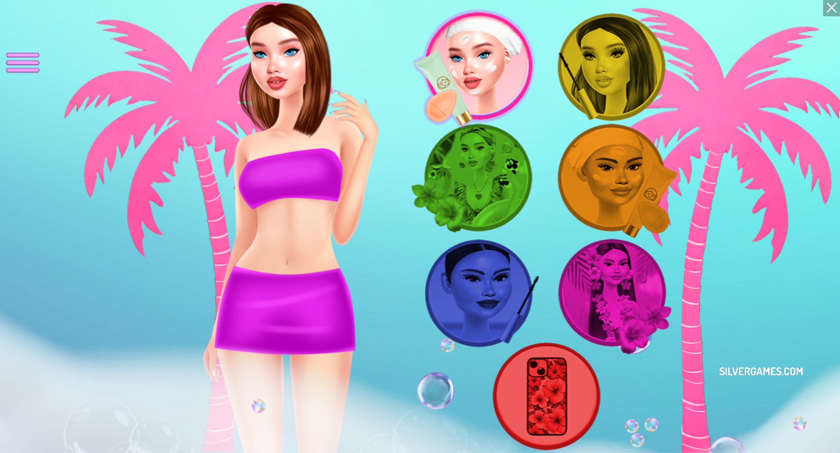 Ibiza Foam Party is a fun dress-up and makeover game where you style characters for the ultimate beach party experience. Splash around in a sea of bubbles, dance to pumping beats, and compete against friends in this free online dress up game on Silvergames.com. Start with skin care and carry on improving the girls’ look.