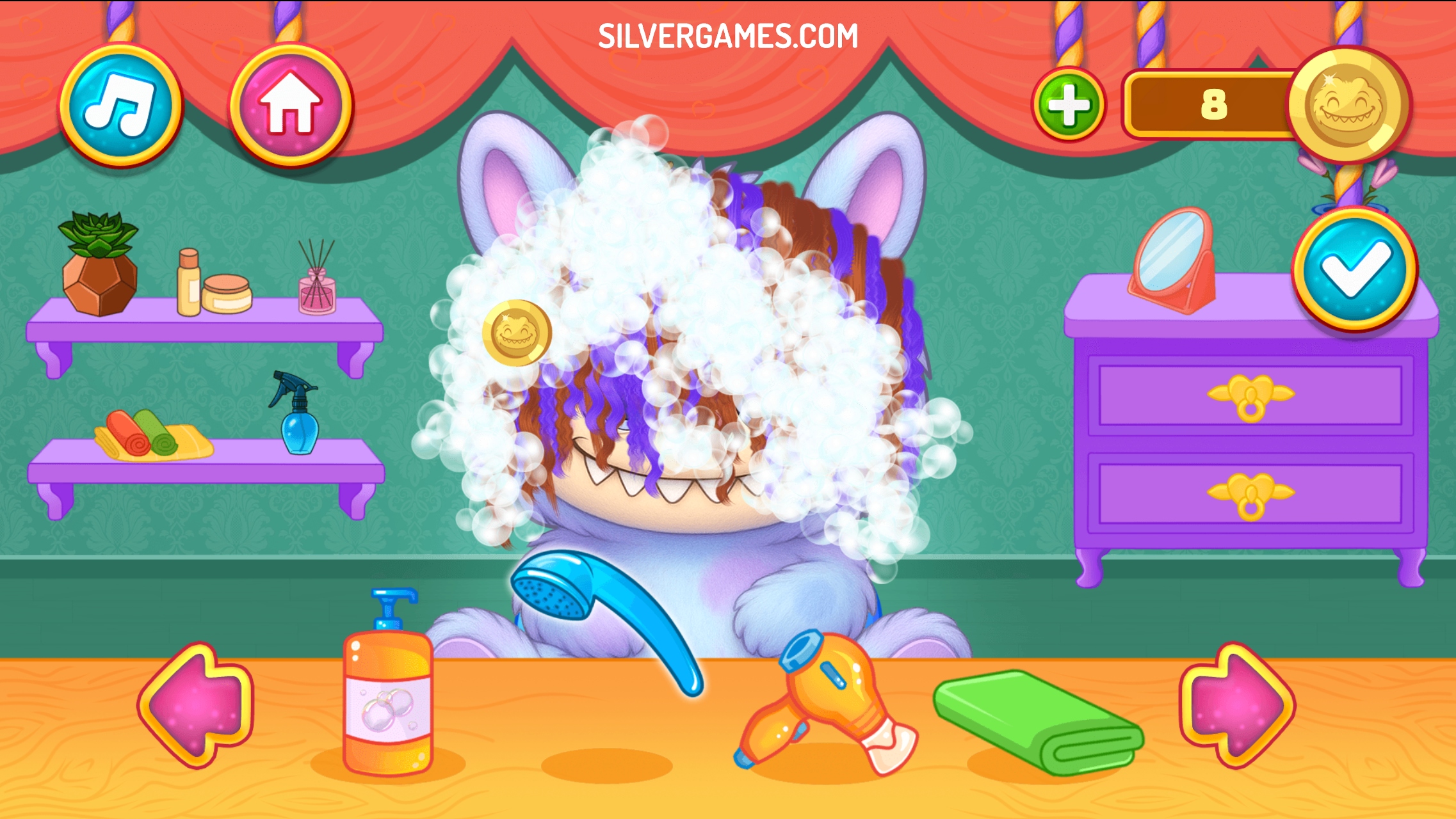 Choose your Labubu monster and start by washing and drying it’s hair. Then choose from different scissors, clippers and curling irons to create a new hairstyle. Once the cut is done, you can dye the hair in bold colors, add highlights, or accessorize with bows, hats, and other fun decorations. Don’t forget to collect the coins that will appear on the screen. Have fun!