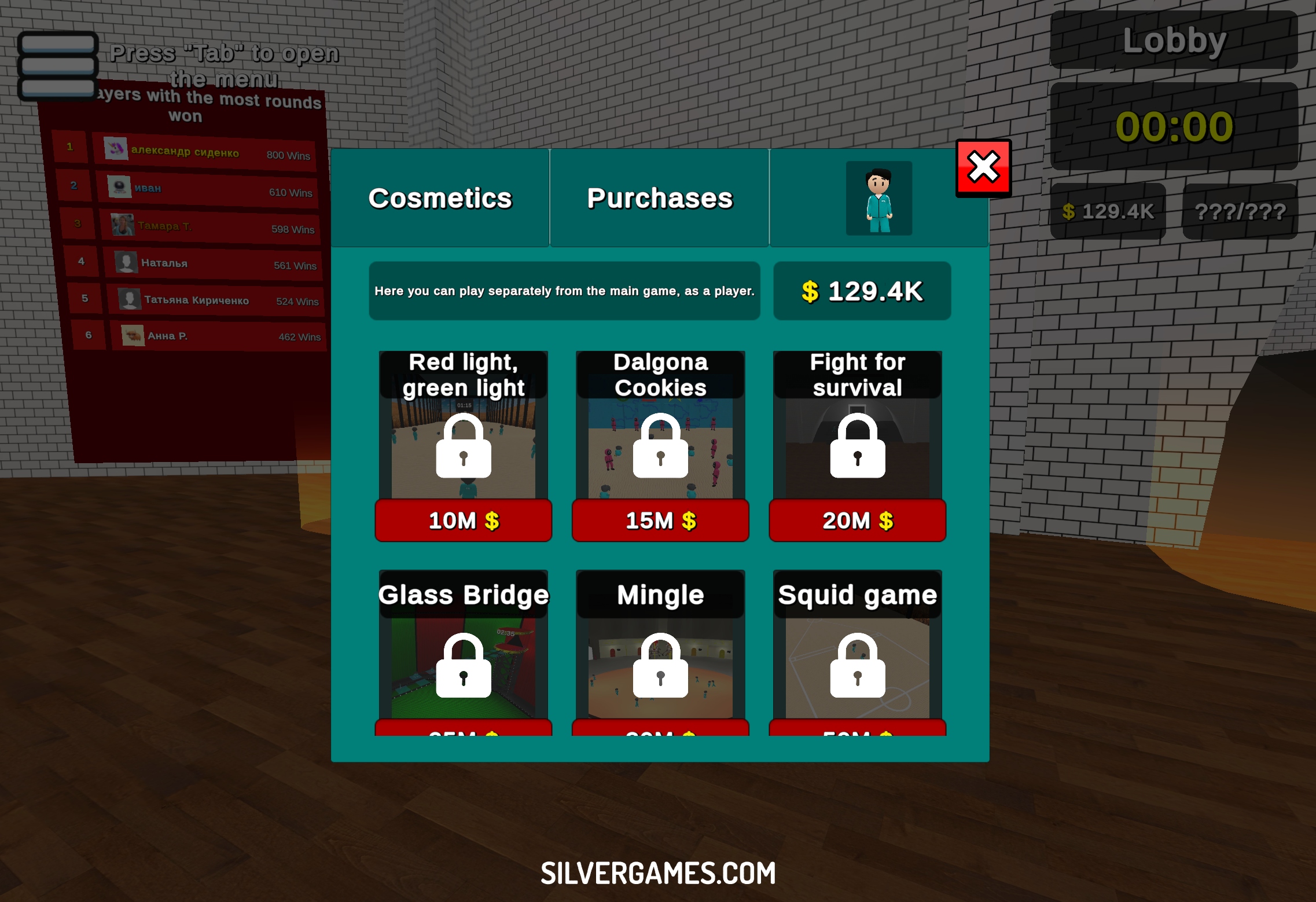 Emerge as the final winner among a group of participants.The game features challenges such as red light/green light, dalgona candy and marble games, each with its own set of rules and risks. Avoid traps and be careful with your decisions. Carve sugar candy and cross the glass bridge or escape the deadly carousel. Have fun!