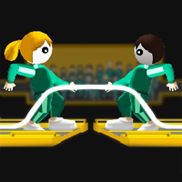 Tug of War: 2 Player is the perfect game to test your strength in the style of the popular TV series Squid Game. Here you can take on the CPU and find out who is stronger. Pull the rope by clicking the up arrow as fast as you can to knock the opposing team off the platform to their doom. As soon as you lose a round, three members of your team will be disqualified.