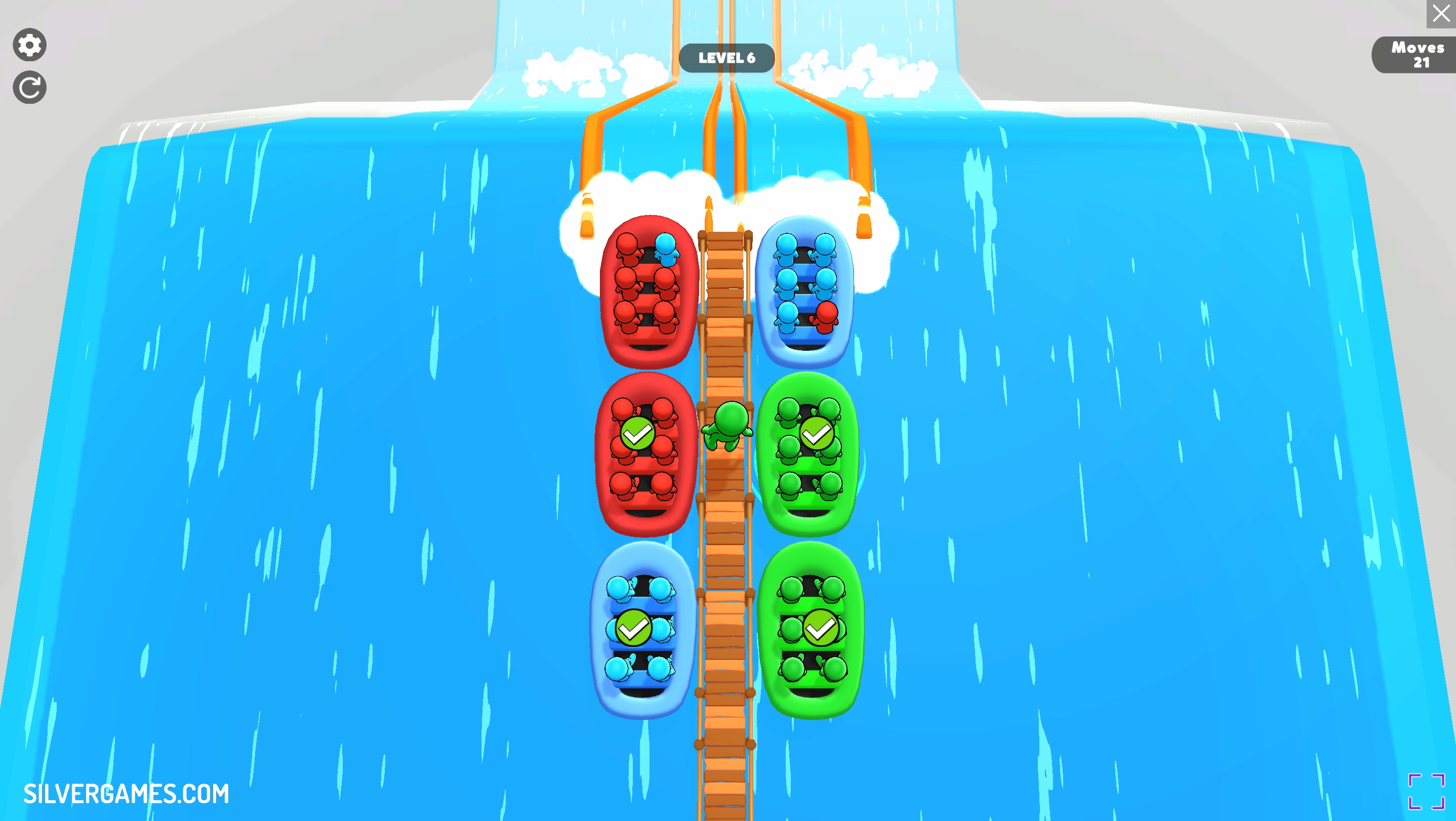 Waterpark Sort is an addicting puzzle game where your goal is to sort colorful inflatable boats. To do that you need to fill them with the stickmen of the same color. In this free online game on Silvergames.com you need to be fast and think strategically.
