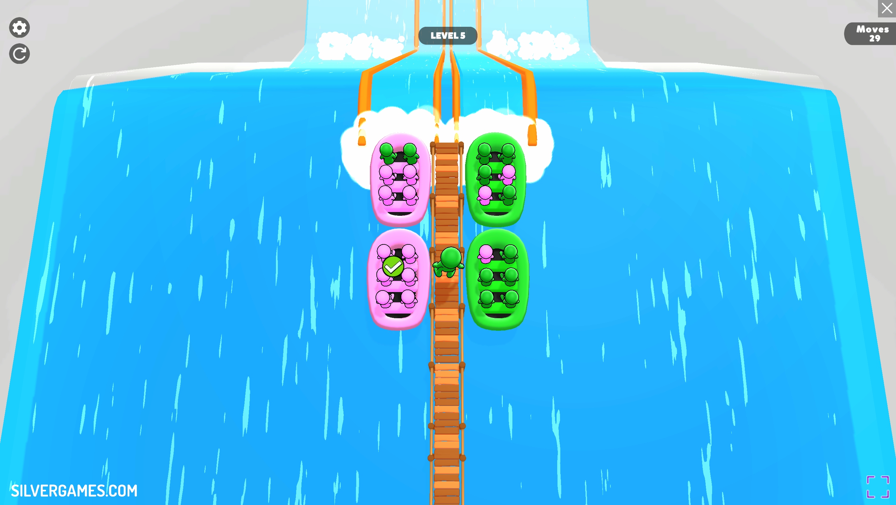 In each level, you're presented with several boats filled with passengers of different color. Your task is to eliminate passengers and exchange them with others of matching color. But there’s a catch - you can only exchange one stickman at a time. As you progress, more boats and colors are added, increasing the difficulty and requiring deeper thinking to avoid getting stuck. You can undo moves or restart a level if needed. Have fun!