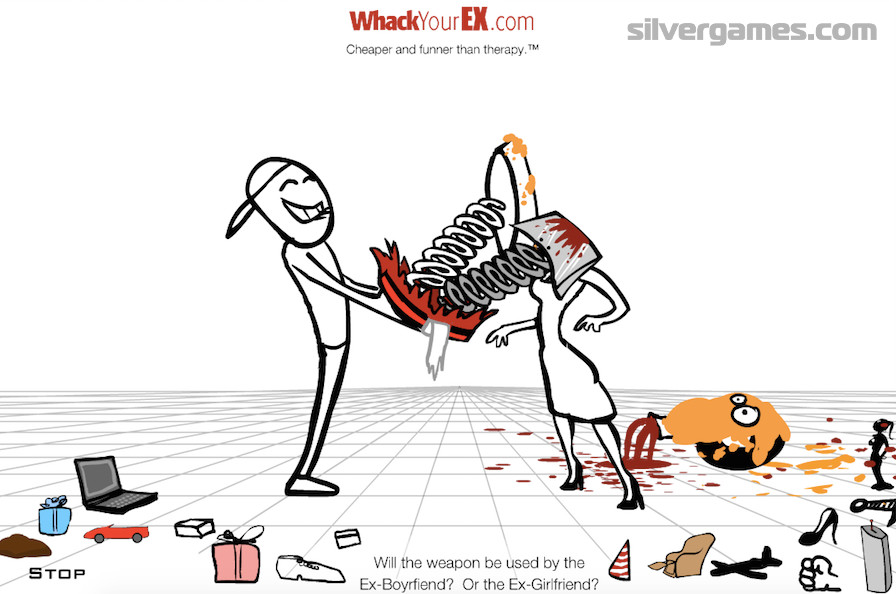 Whack Your Ex is a fun game where you can take revenge on your ex-girlfriend or ex-boyfriend. Romantic relationships rarely end with a little bit of the ultraviolence. Whack Your Ex is here to remedy that. Feel like commemorating your break-up with some cartoonish brutality and over-the-top savagery? Pick objects and see how and who gets to whack whom in gruesome and violent ways. It's cheaper than seeing a therapist or processing your feelings, and it's also infinetely less useful.