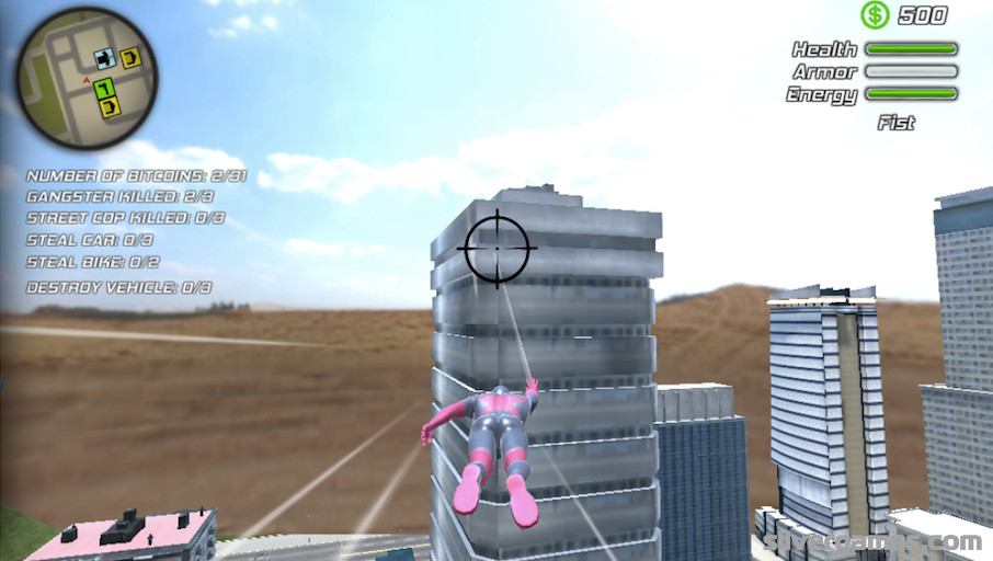 Amazing Rope Hero is a fascinating third person open world game about a strange type of superhero with powers similar to Spiderman’s and you can play it onlie and for free on Silvergames.com. Enter this chaotic Vice Town and control this masked character to fight against criminals and police trying to stop you. Complete missions, like collecting bitcoins or stealing different kinds of vehicles and use your special powers to climb buildings or to kill people with a super lethal ray that comes out of your eyes. The revolution has started and the fate of the citizens is in your hands.