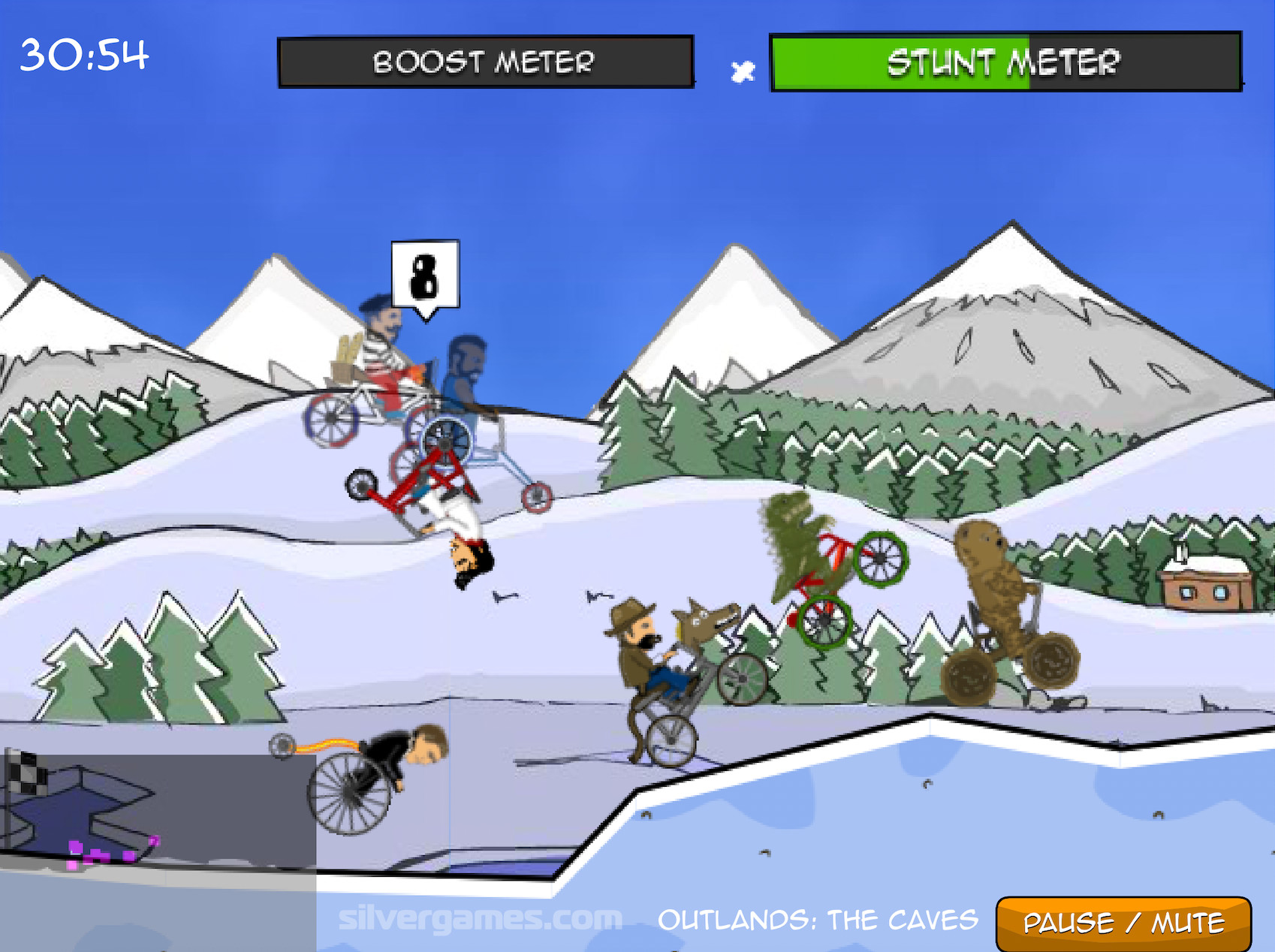 Cyclomaniacs is a great vertical bike racing and stunt game in which you have to compete in lots of locations to become the ultimate champion. You can play this game online and for free on Silvergames.com. Start playing as a skillful robot and try to win races to unlock cool features and characters. Try to balance your bicycle to perform air flips and, of course, avoid falling down.