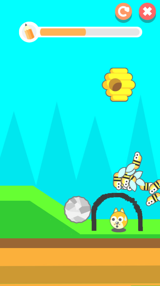 Doge vs Bees is a fun puzzle game where you must protect the lovable Doge from a swarm of dangerous bees. In this brain-teasing challenge, your goal is to draw lines and create barriers that shield Doge from the relentless bees and guide him to safety. Each level presents a unique scenario with increasingly tricky obstacles, requiring clever use of physics and strategic thinking. The game combines relaxation with mental stimulation as you solve puzzles by sketching walls to block bee attacks.