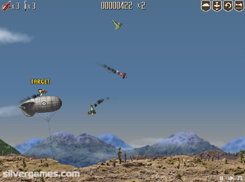 Dogfight 2 is a free World War 2 airplane fighting game where you control a heavy armed biplane. Haven't gotten enough of the Great War? It's time for the next dogfight in the air in this great WW2-themed shooting game. Fight for the Germans and get a rid of all enemies to restore the freedom. Note all background information before each mission and perform awesome maneuvers while shooting as much opponents as you can.