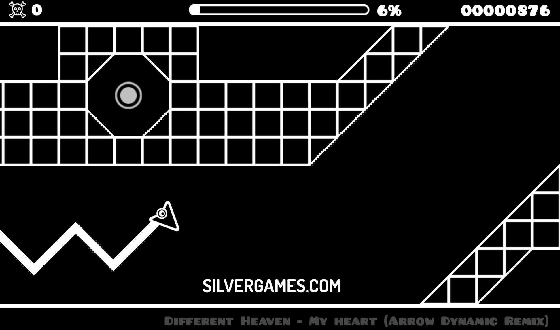 The minimalist style, bold shapes, and fast beats create a rhythm that keeps you locked in and coming back for more. Each run is different, challenging you to improve your score and beat your last distance. Whether you're chasing perfection or just trying to survive, Geometry Arrow 2 on Silvergames.com keeps the pressure on. Have fun!