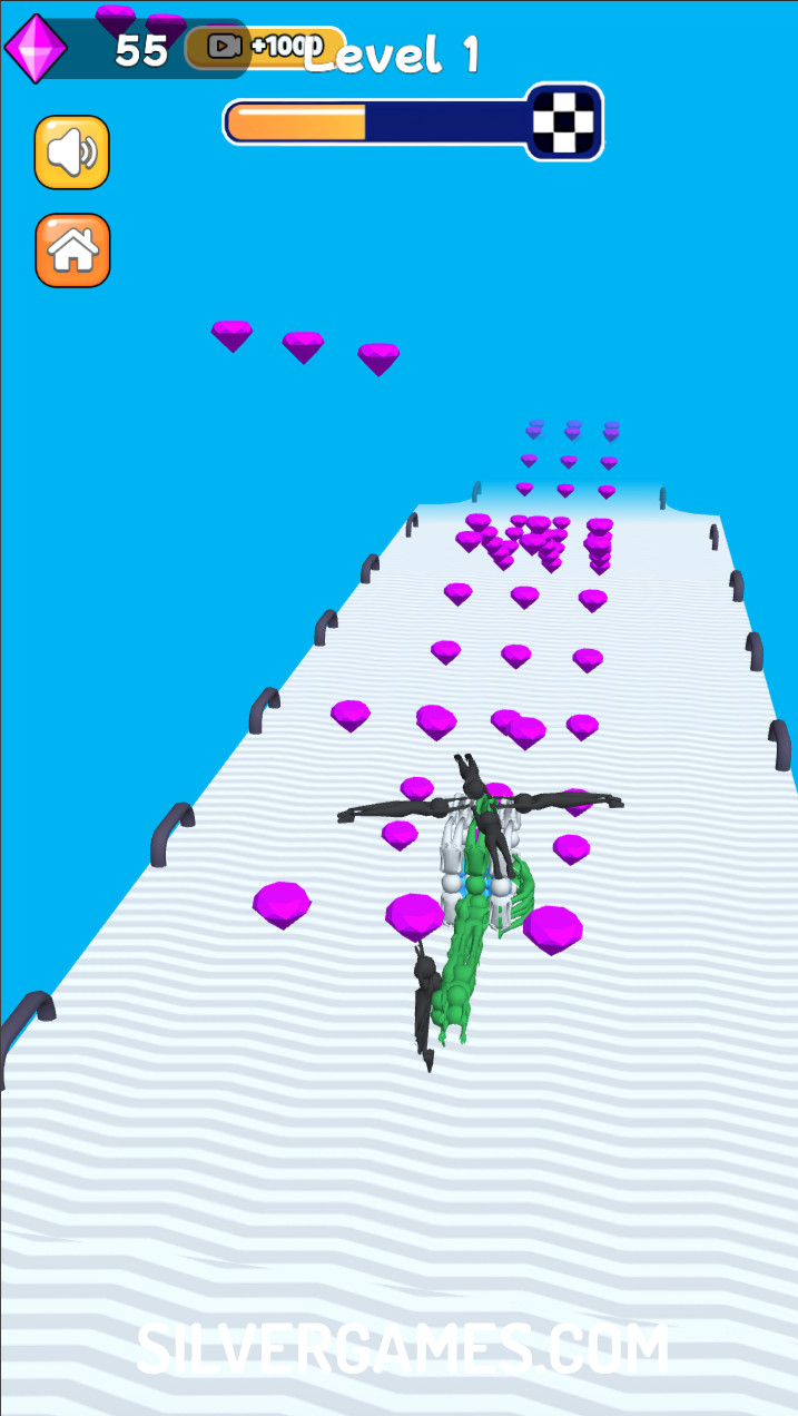 Timing and quick reactions are key as you steer, dodge, and power through each challenging level. Collect coins, unlock new skins, and compete for the highest score as you race through vibrant tracks full of surprises. Human Vehicle Run delivers a unique and entertaining experience that keeps you coming back for more. Have fun playing Human Vehicle Run online and for free on Silvergames.com!