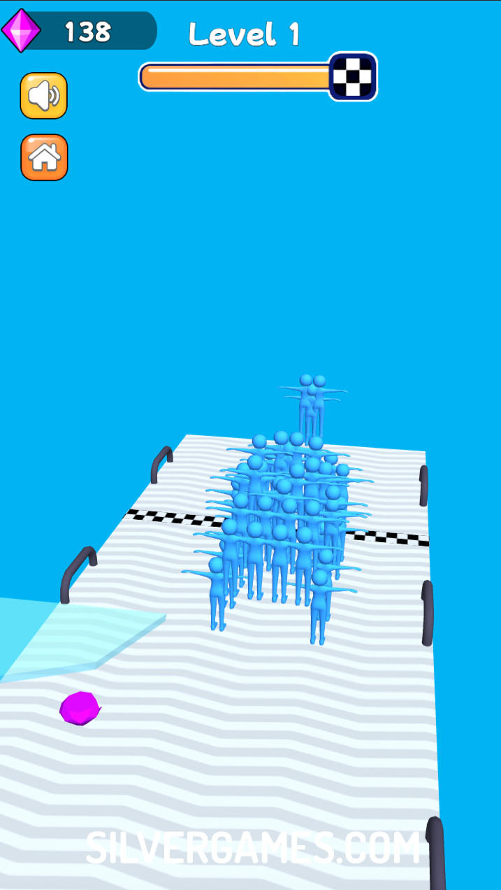 Human Vehicle Run is a fun and fast-paced arcade game where you build your vehicle out of people. Navigate through wild obstacle courses, gather more teammates to expand your human-powered machine, and avoid tricky hazards that can break your formation. The more people you collect, the bigger and faster your vehicle becomes, allowing you to smash through obstacles and reach new high scores.