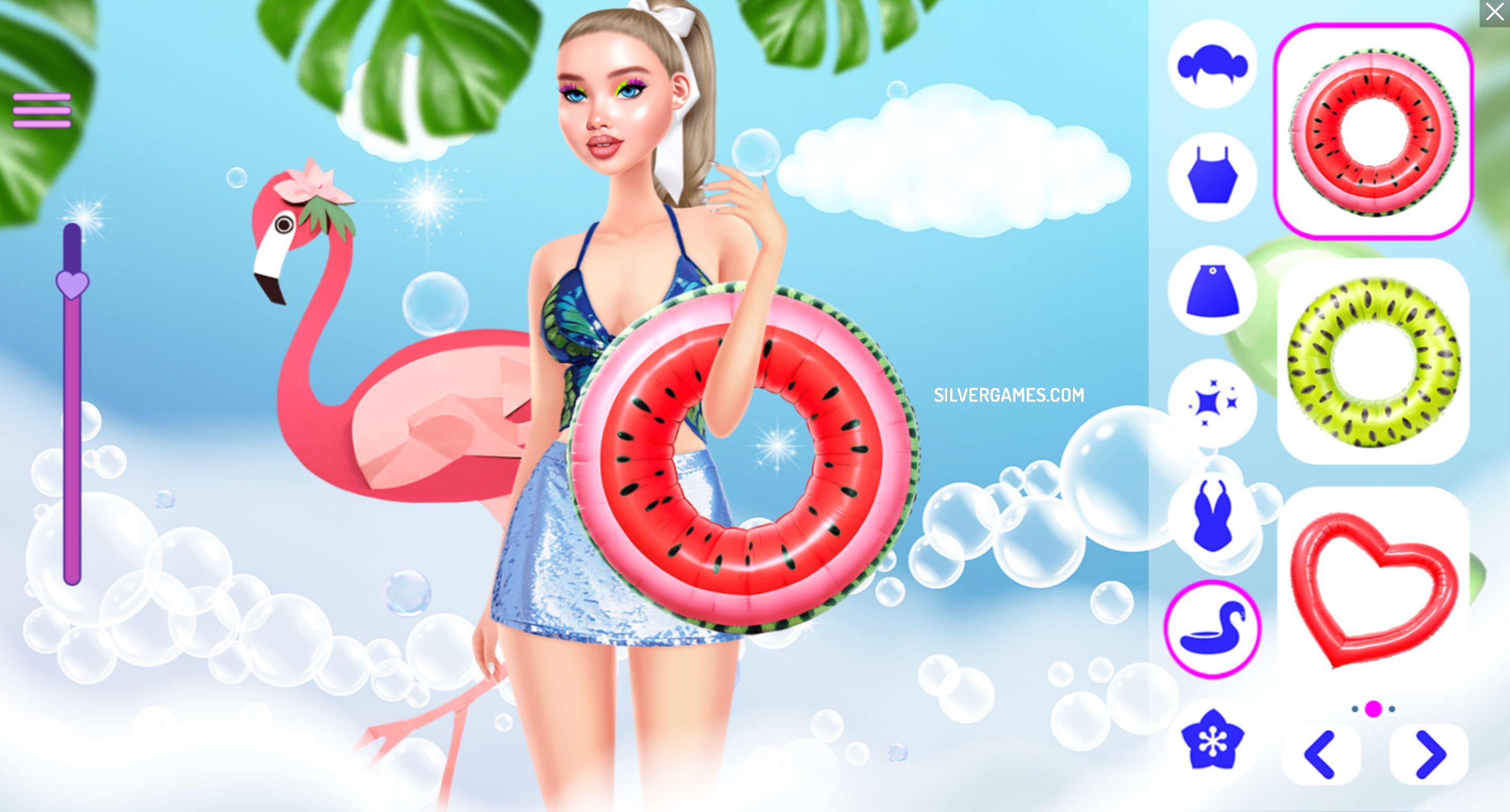 Pick trendy outfits, experiment with bold summer looks. Get your character ready for a wild foam party under the Ibiza sun. Choose from swimsuits, sunglasses, accessories and colorful hairstyles to create the perfect party vibe. Mix and match styles to stand out on the dance floor, then snap a photo to show off your final look. Whether you're going for cute, cool or glam, it's all about expressing your summer party style. Have fun!