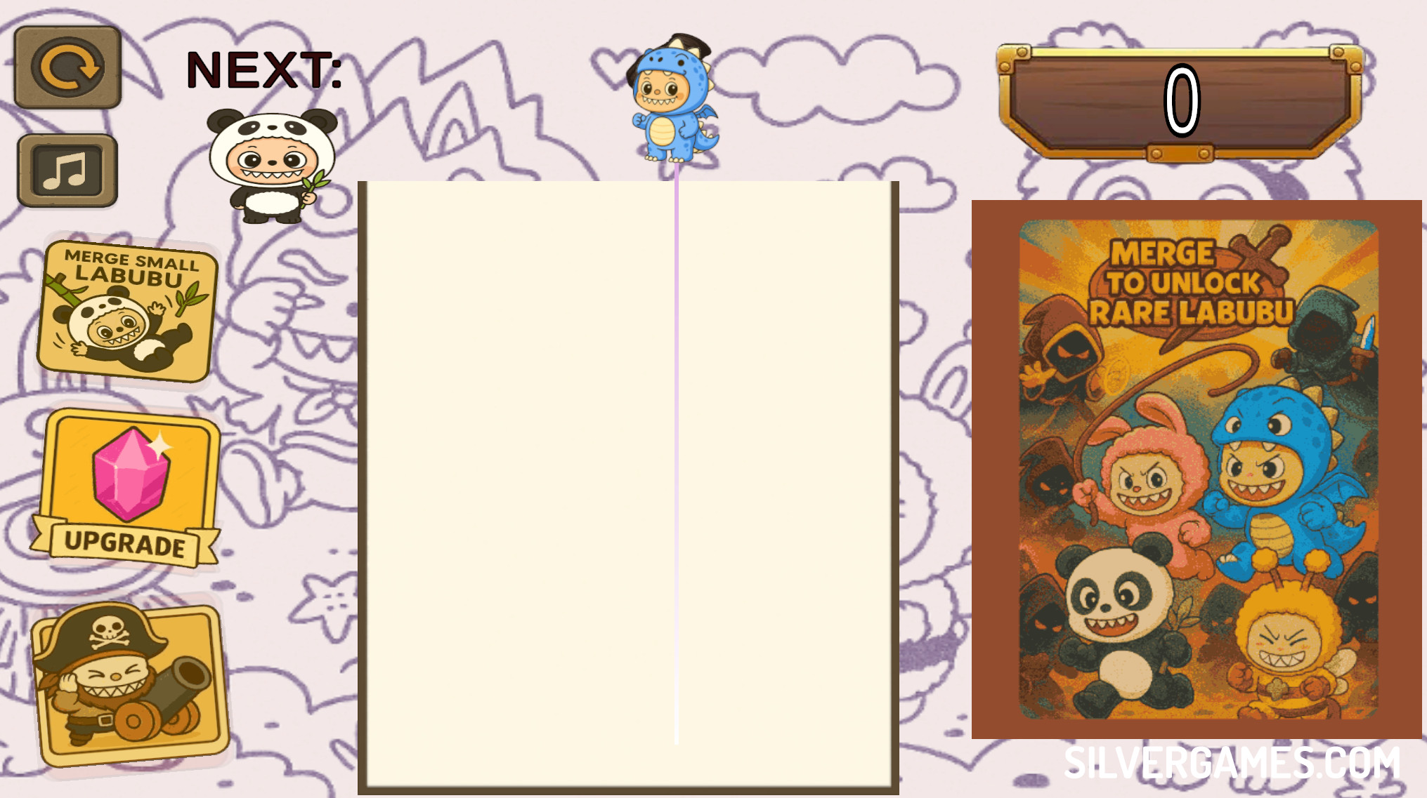 Labubu Merge Clicker is a fast-paced merging game where you drop and combine quirky Labubu monsters to discover new forms and score big. Your goal is to manage a constantly filling box by dropping Labubus into it, merging identical ones to evolve them into rarer, more powerful versions. The more you merge, the higher your score climbs — but be careful, because once the box overflows, it's game over. Use your keyboard (A/D or arrow keys) or click with your mouse to control where each Labubu drops.