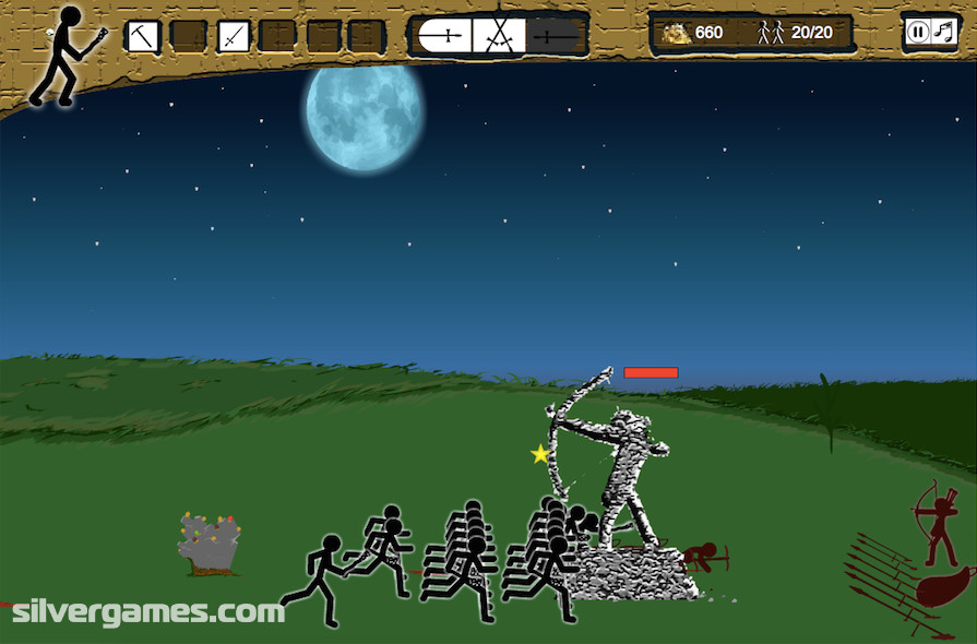 ⚔ Stick War is a real-time strategy game in which the player controls an army of stick figures. The goal is to defeat enemy nations and destroy their statues. The player must collect resources to train various units such as swordsmen, archers and magicians. A special feature of the game is that the player can not only train units, but also directly control individual soldiers.