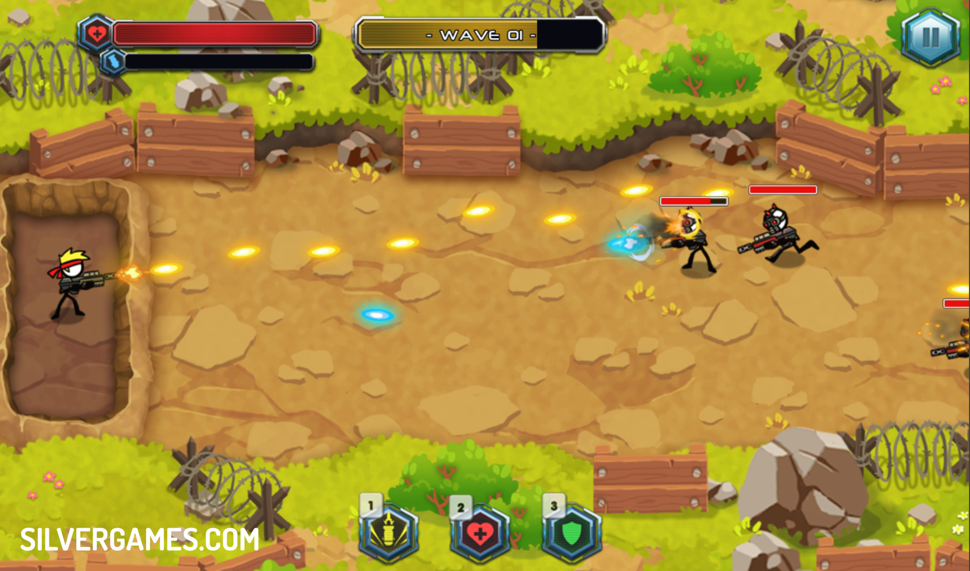 Between the waves, you have the chance to upgrade your weapons and defenses. These upgrades make your attacks stronger and help you last longer against tougher enemies. Choosing the right upgrades and managing your resources well is key to success in the game. You will face different types of enemies, and learning how to use your weapons effectively is important to stop them before they reach you. Are you ready to take on the challenge and survive wave after wave of enemies? Prepare your weapons, plan your moves, and prove your skills in this thrilling tower defense adventure! Much fun with Stickman Warfare, online and for free on Silvergames.com!