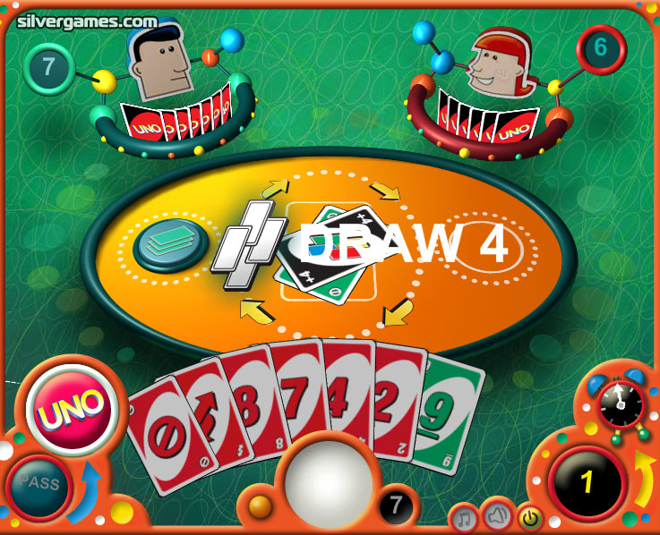 UNO Online is a fun card game for 1 player. Play the super popular game UNO online with your best friends or versus the computer. For those who don't know the rules: you start with 7 cards. You must match the number or color of the card on the middle, leaving one on top of it. If you can't match it, you pick one card. Use bonus cards to force your opponents to pick up to 4 cards or skip their turns. You will win this online card game once you got rid of all your cards. And remember, if you have only 1 card, press the "UNO" button or you will have to pick 2 new cards.