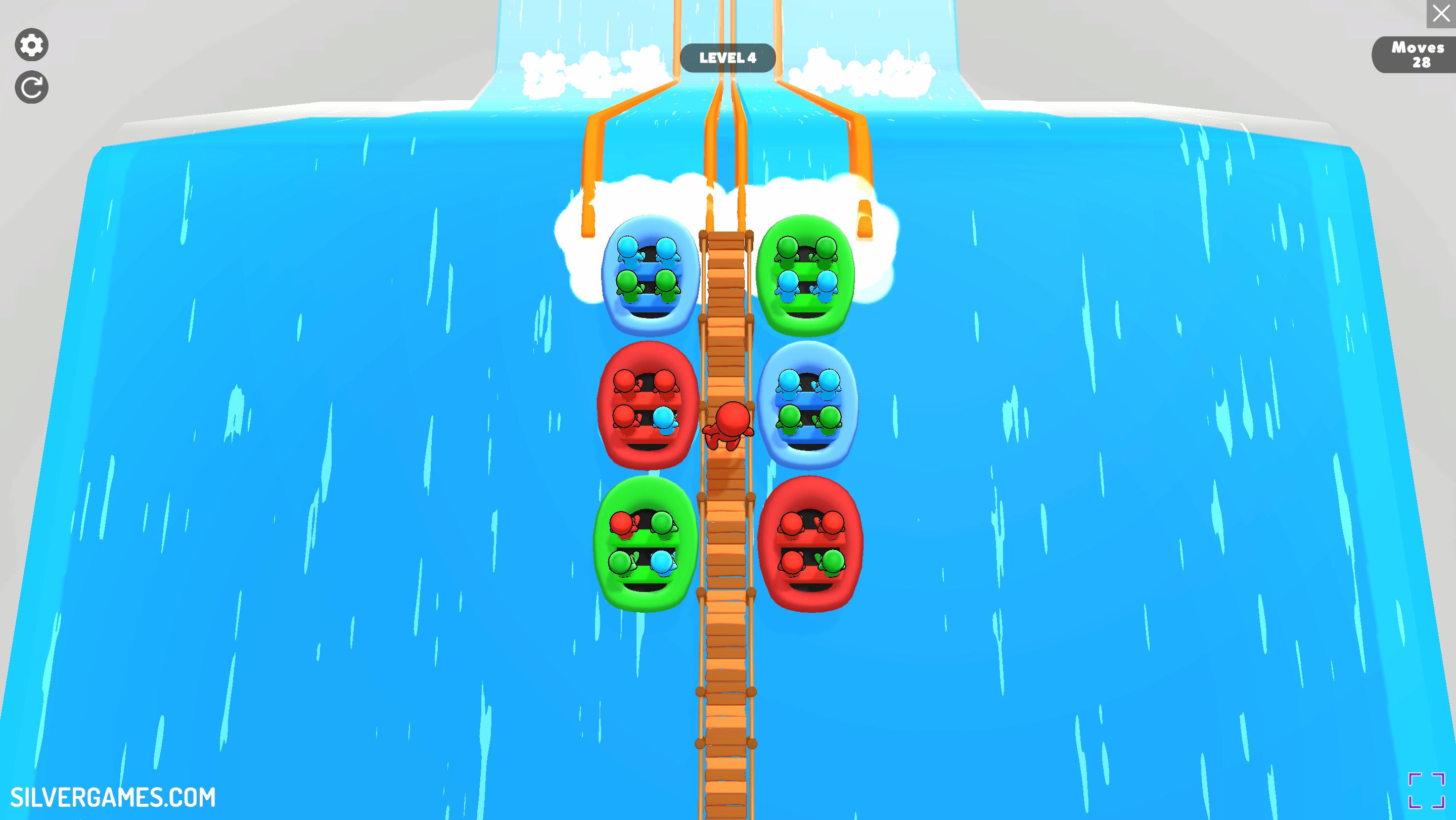 Waterpark Sort is an addicting puzzle game where your goal is to sort colorful inflatable boats. To do that you need to fill them with the stickmen of the same color. In this free online game on Silvergames.com you need to be fast and think strategically.