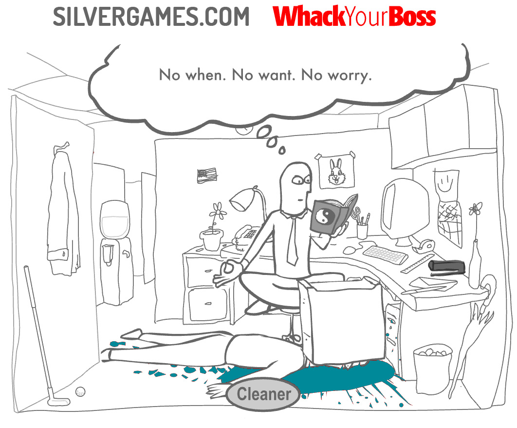 With the push of a button, the cleaner will show up and remove any and all evidence of the brutal killing that just took place. This allows you to look for a new way to obliterate the body of your boss once more. After all, what's a little bit of homicidal rage among work collegues? Beat the game by finding all the way sin which you can whack your boss. If you want to even get close to finding the 24 ways to kill the boss and beat the game, you are going to be willing to experiment a little. Scan the entire workplace for new items to activate in the hopes of watching a new killing animation unfold. Stick it to the boss, and defeat him using the only tool that is sure to get the job done: a little bit of the old ultraviolence. Enjoy playing (Don't) Whack Your Boss online here on Silvergames.com!